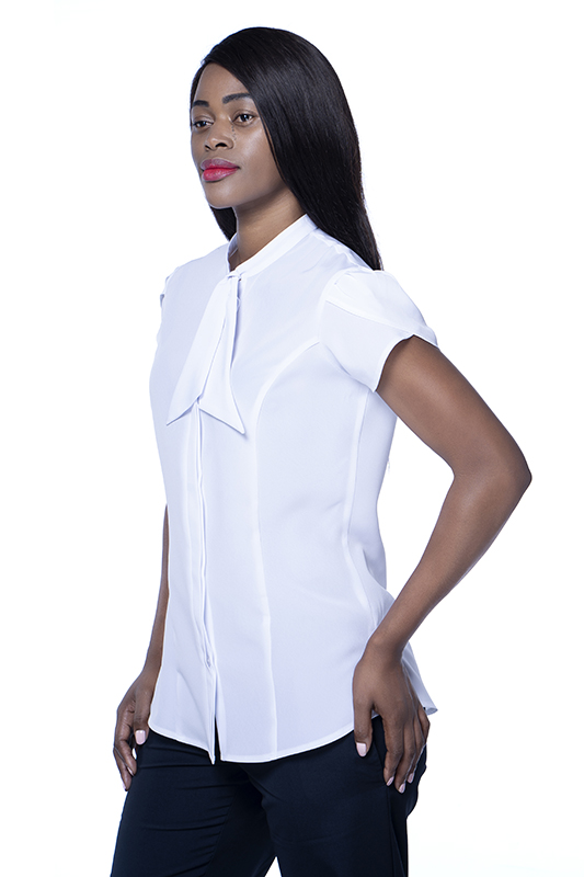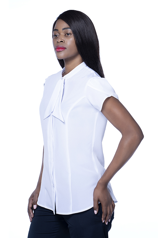 Short Sleeve Pleats on sleeve Concealed buttons Side slits